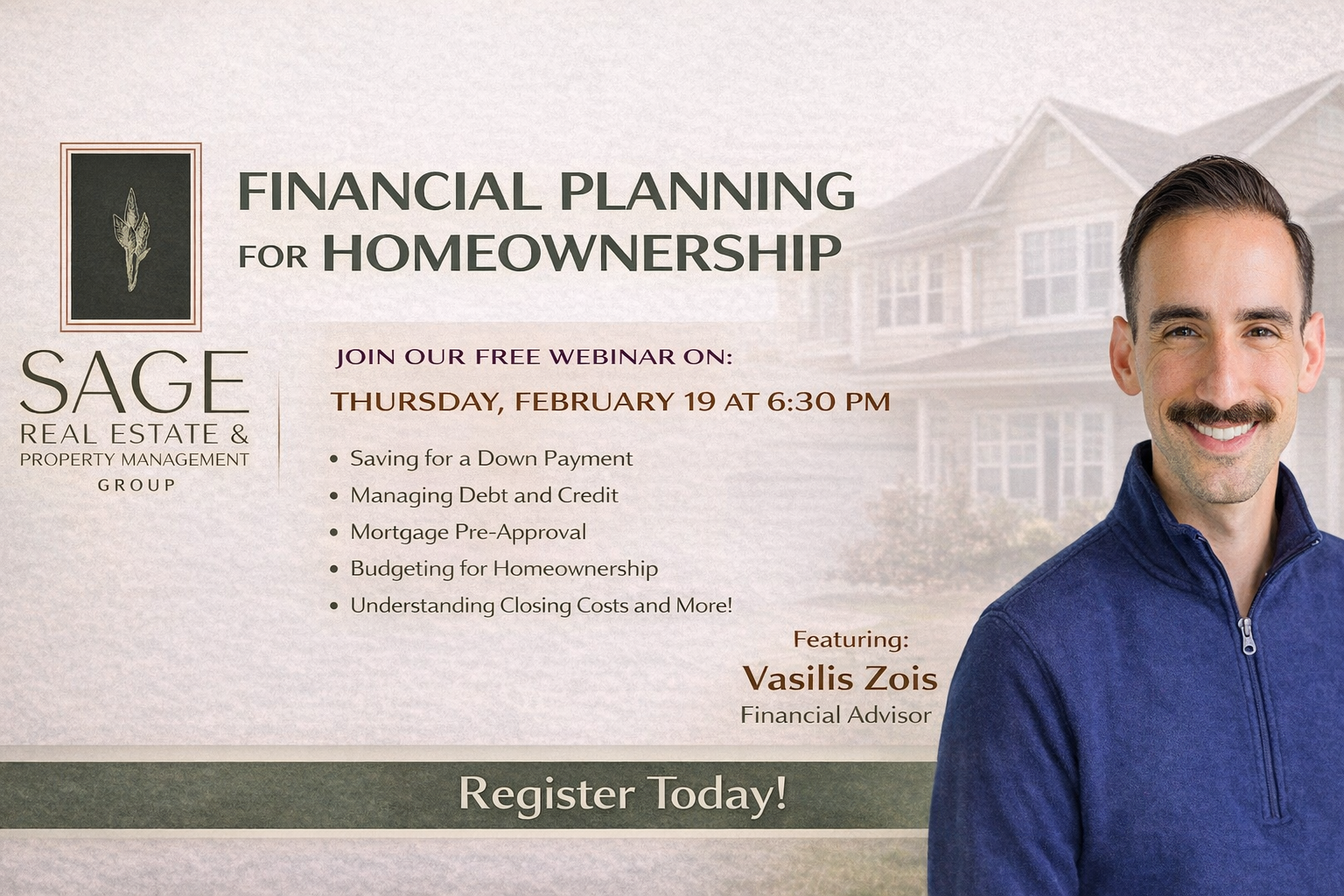 Ready to make your dream home a reality? Join our online event where we break down the essentials of financial planning for buying a house. Whether you're a first-timer or just looking to get smarter with your money, this session is packed with tips and tricks to help you prepare and plan. Don't miss out on the chance to get your finances in check and step confidently into homeownership!